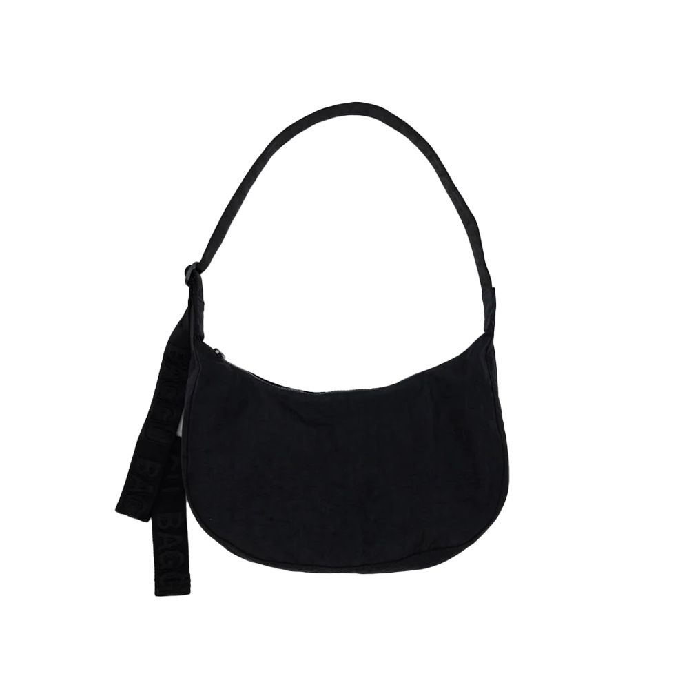 Baggu style and quality meets an over the shoulder style with the Medium Nylon Crescent Bag. Made with recycled nylon filament yarn, produced from pre-consumer waste. This saves scrap material from being landfilled, conserves petroleum resources and reduces greenhouse gas emissions.