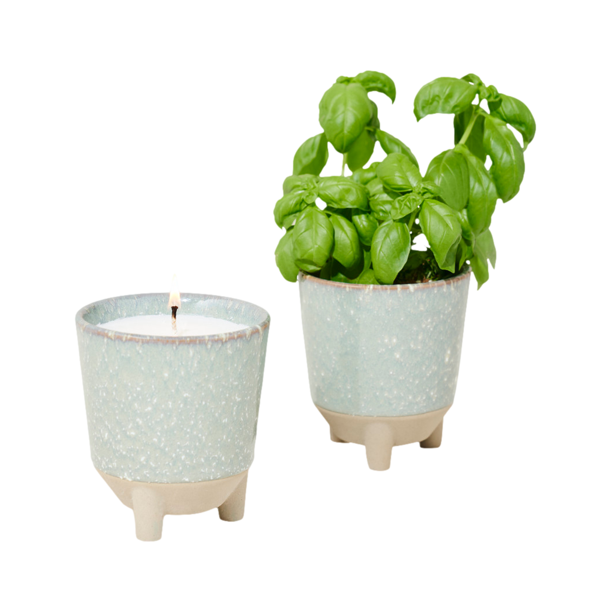 Burn, plant, and grow! This ceramic candle vessel transforms into a planter after the flame has burned down and includes a complete kit to grow aloe.