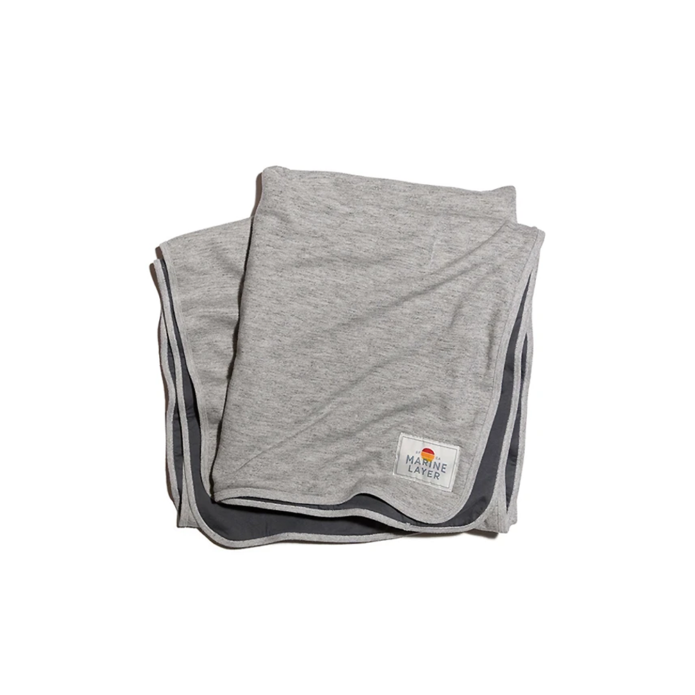 The outside of this blanket is made with absurdly soft mock twist sherpa fleece fabric, and the inside is lined with Marine Layer’s signature sustainable t-shirt fabric.