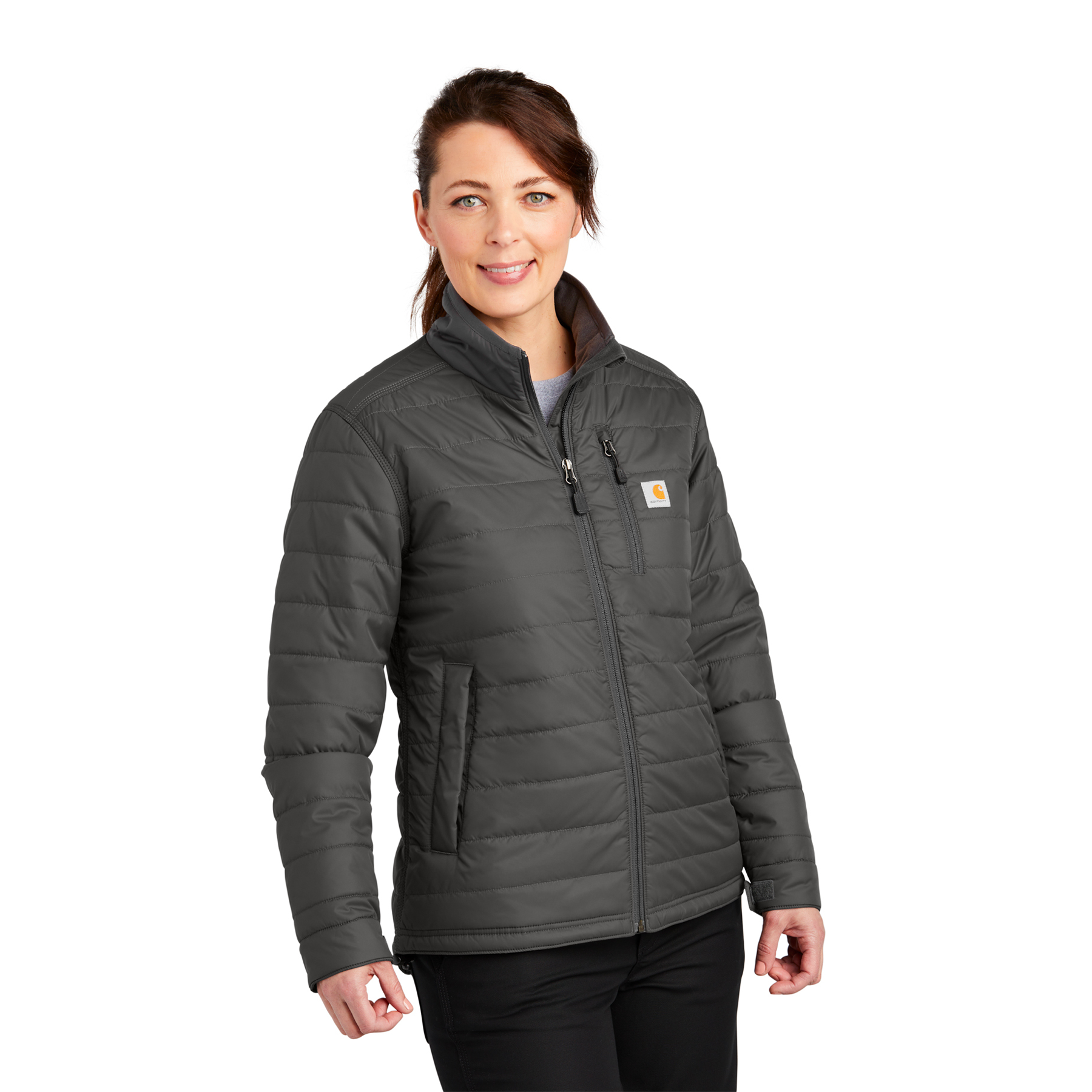 - Carhartt label sewn on chest pocket