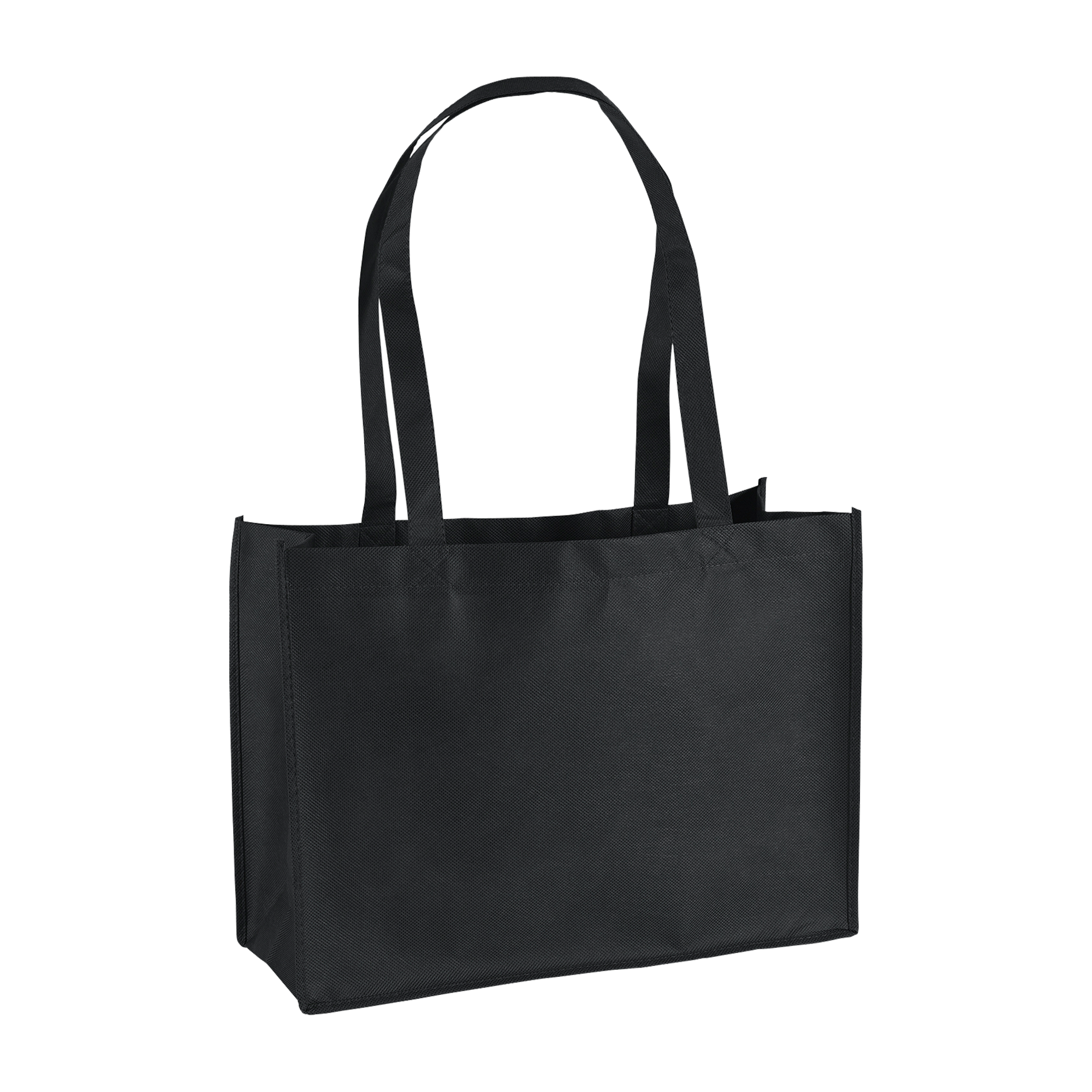 80 GSM premium non-woven polypropylene tote with stitched seams, side and bottom gussets, and reinforced sewn handles.