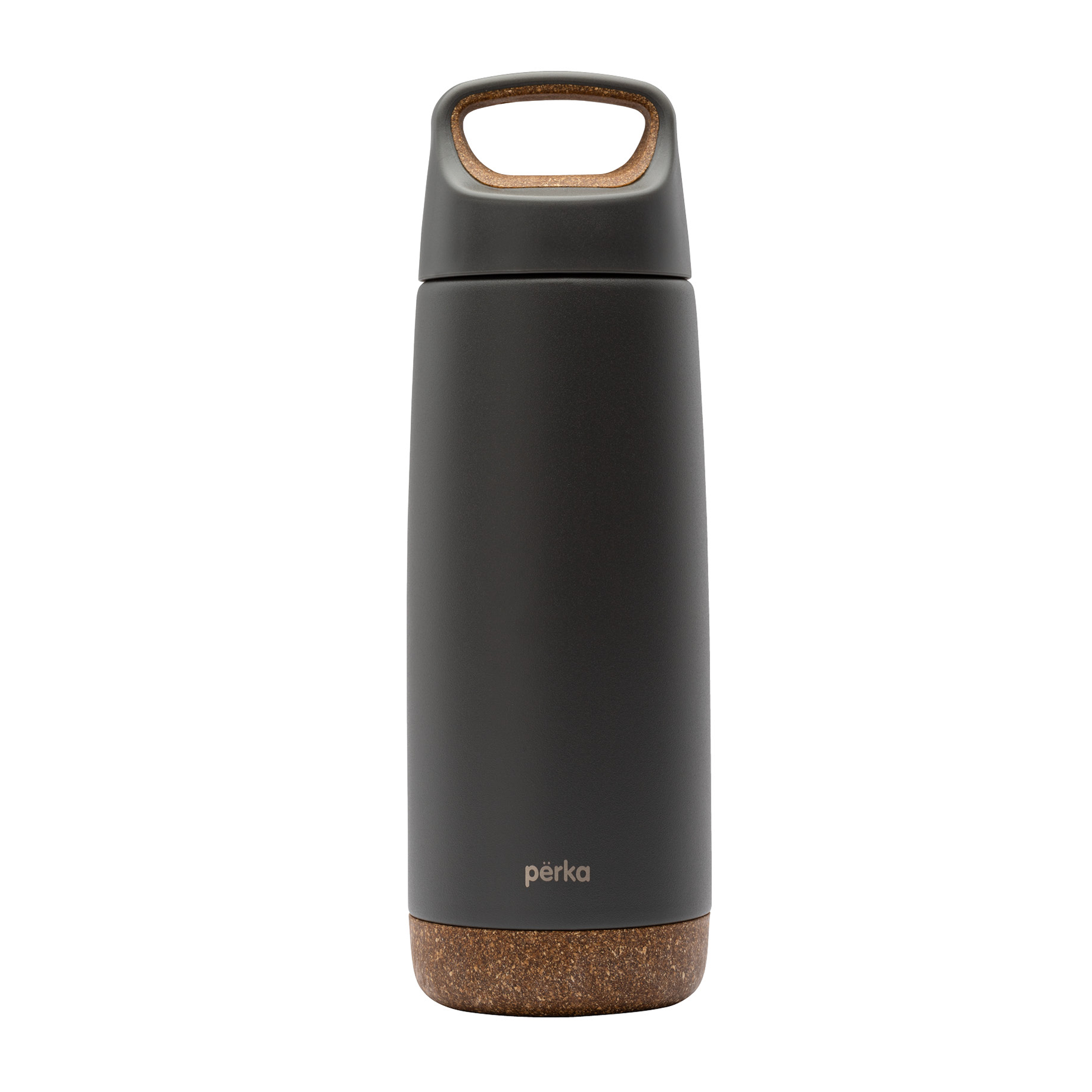 The Perka Axton Stainless Steel Water Bottle has a screw-top lid with an integrated carry handle and soft co-molded cork grip for easy and comfortable traveling. The bottom of the bottle has an anti-slip cork base that prevents surface scratches on tables and counters.